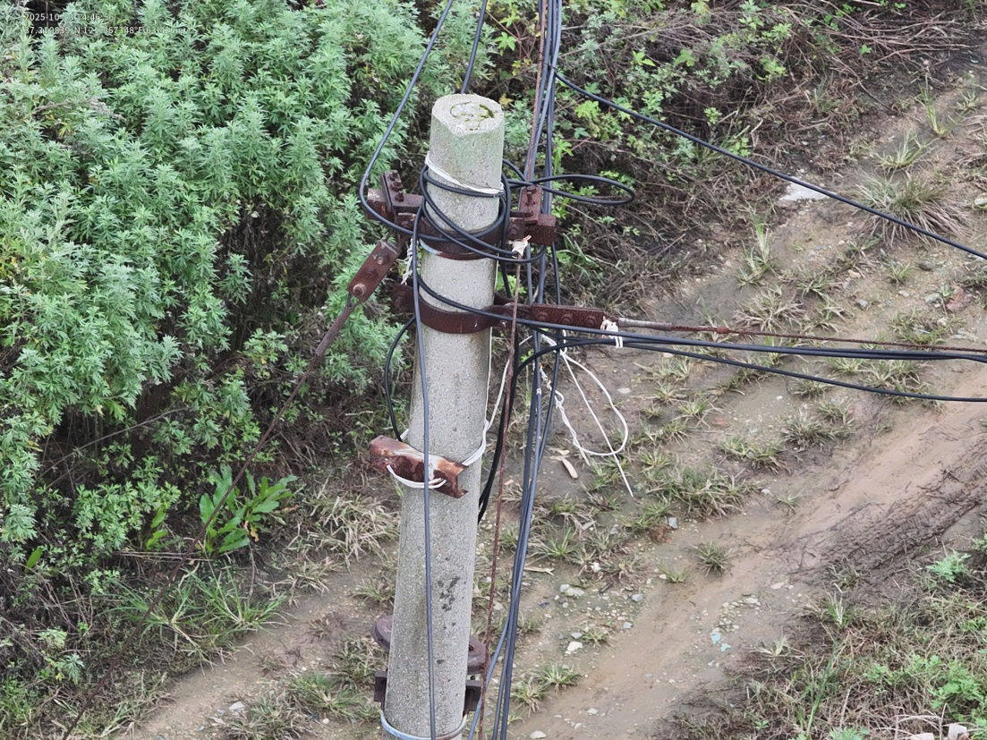巡检团队重点针对跨桥面、沟壑、村庄深处、河流旁等人工开车或步行不便的区域,通过无人机高空搜查和精准拍照(距离杆路大致10米以外),对杆路设施进行了系统检查。具体内容包括:光缆杆底部是否出现腐烂、倾斜、开裂或钢筋裸露;杆顶是否有大型鸟巢、拉线松动或锈蚀;光缆本身是否存在垂度过大、松弛下坠或明显外部损伤;接头盒的密封性是否完好、固定是否松动;以及外部环境如对地距离、树木隐患、第三方施工等可能影响网络安全的因素。拍摄过程中,无人机全方位采集高清图像,所有照片均添加经纬度水印,为后续存档查阅与隐患整改提供了精准的位置信息支撑。飞手精准操控设备,确保了数据的全面性与清晰度,团队成员协同配合,实时对光缆状态及隐患点位进行记录与分析,为评估线路安全提供了重要依据。