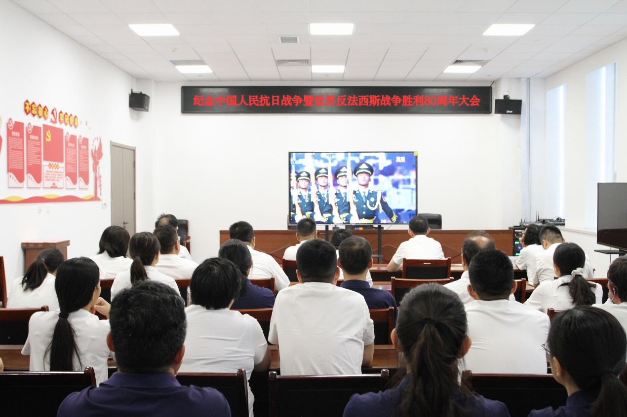 9月3日上午9时,纪念中国人民抗日战争暨世界反法西斯战争胜利80周年大会在北京天安门广场举行。为弘扬伟大抗战精神,凝聚团结奋进力量,济南分公司组织党员集中收看大会现场直播。公司党委领导班子成员与干部职工一同观看了阅兵式,党员们认真聆听近平总书记的重要讲话,仔细观看各个受阅方队的精彩表现。通过大会,大家看到了伟大祖国的繁荣昌盛,看到了中国人民解放军的英姿飒爽。